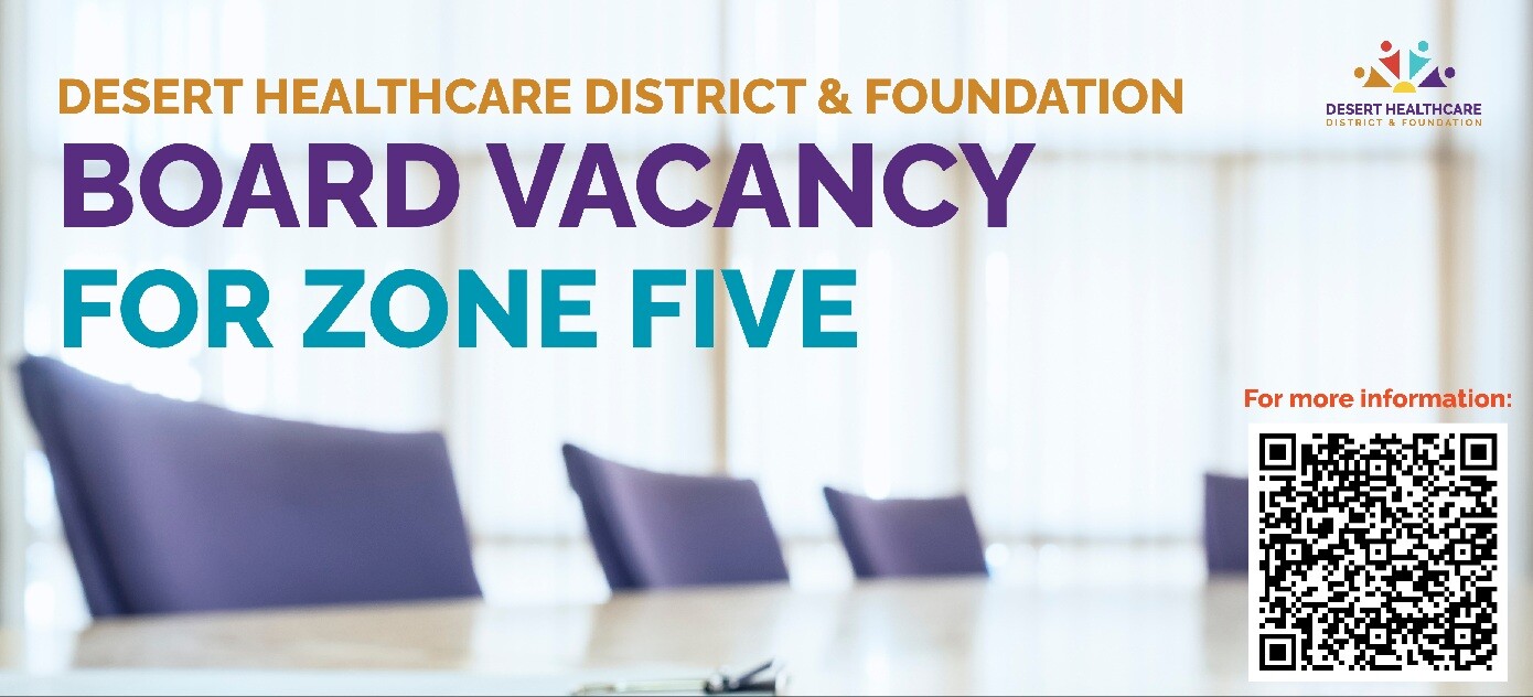 Four seats on the Desert Healthcare District and Foundation Board are open this year. They represent zones 1, 3, 5 and 7. Learn more about the District zones (Hummingbird Plan), which cover the entire Coachella Valley. Candidates can file starting July 15 with the Riverside County of Registrar to run for a Board seat in the November 5, 2024 election. Follow the election updates.